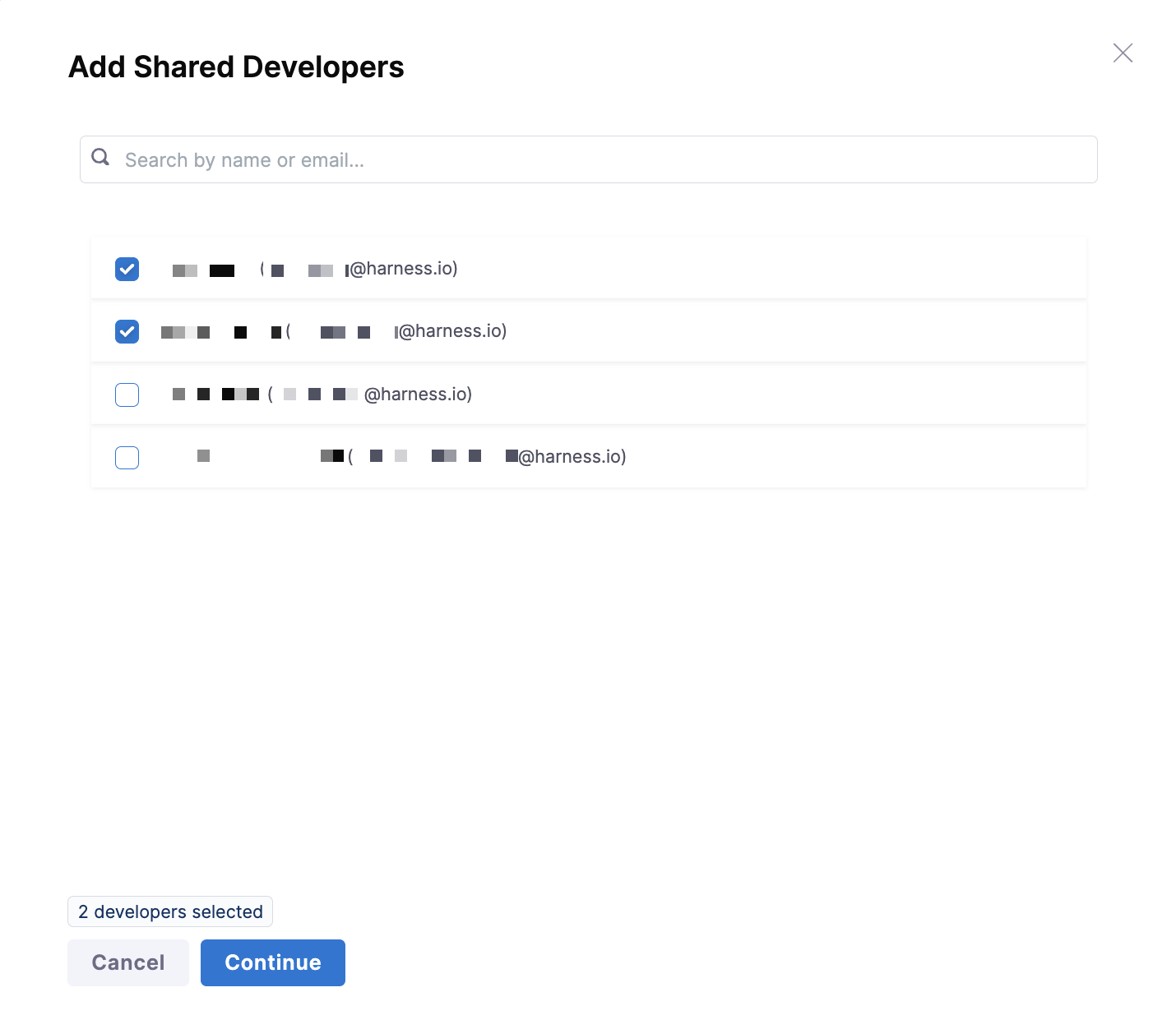2. Search by name or email, and select one or more developers.