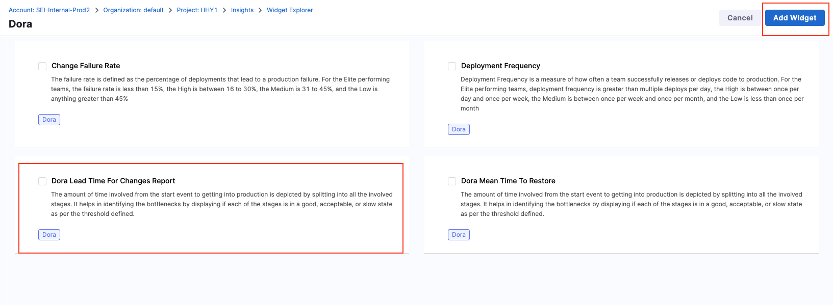 - Select the Lead Time for Changes widget.