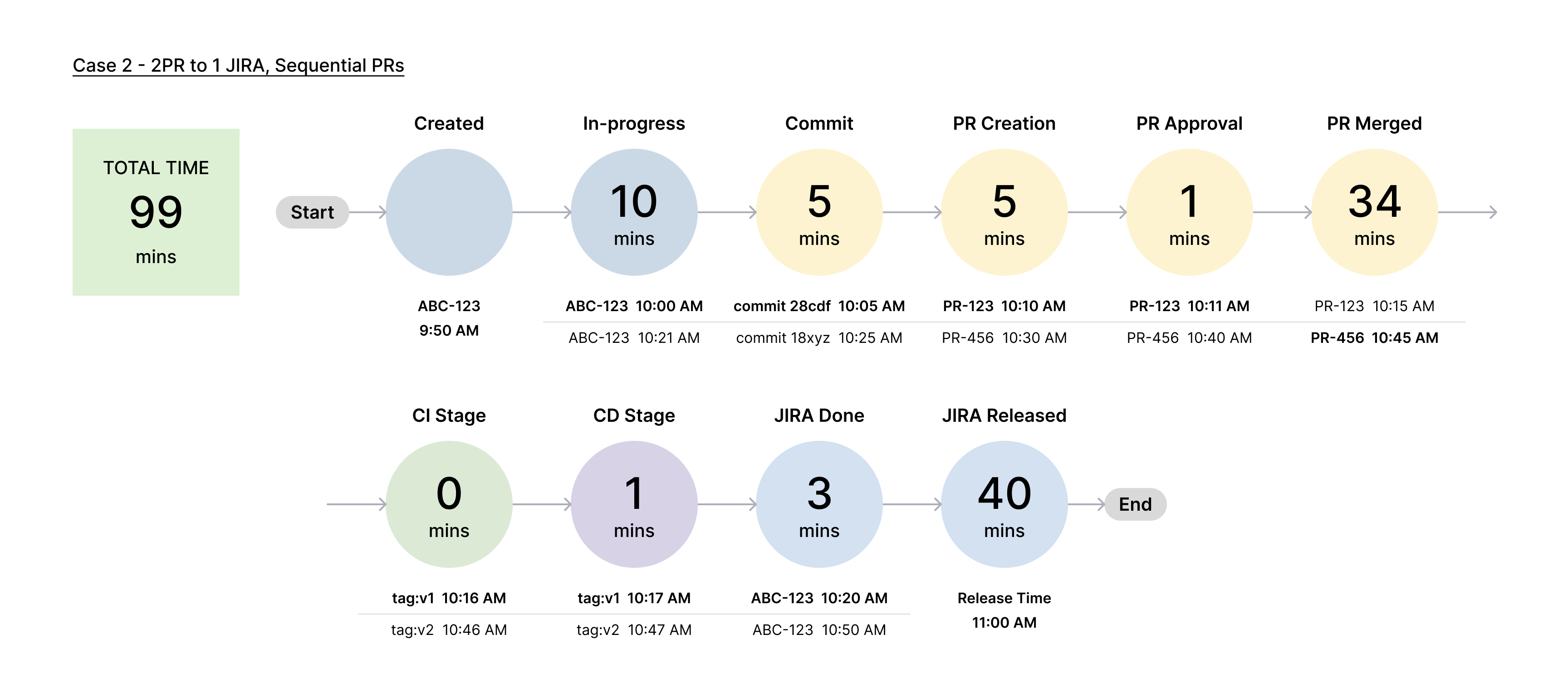 Calculation Example 2 - Two Sequential PRs associated with a Single Jira Ticket