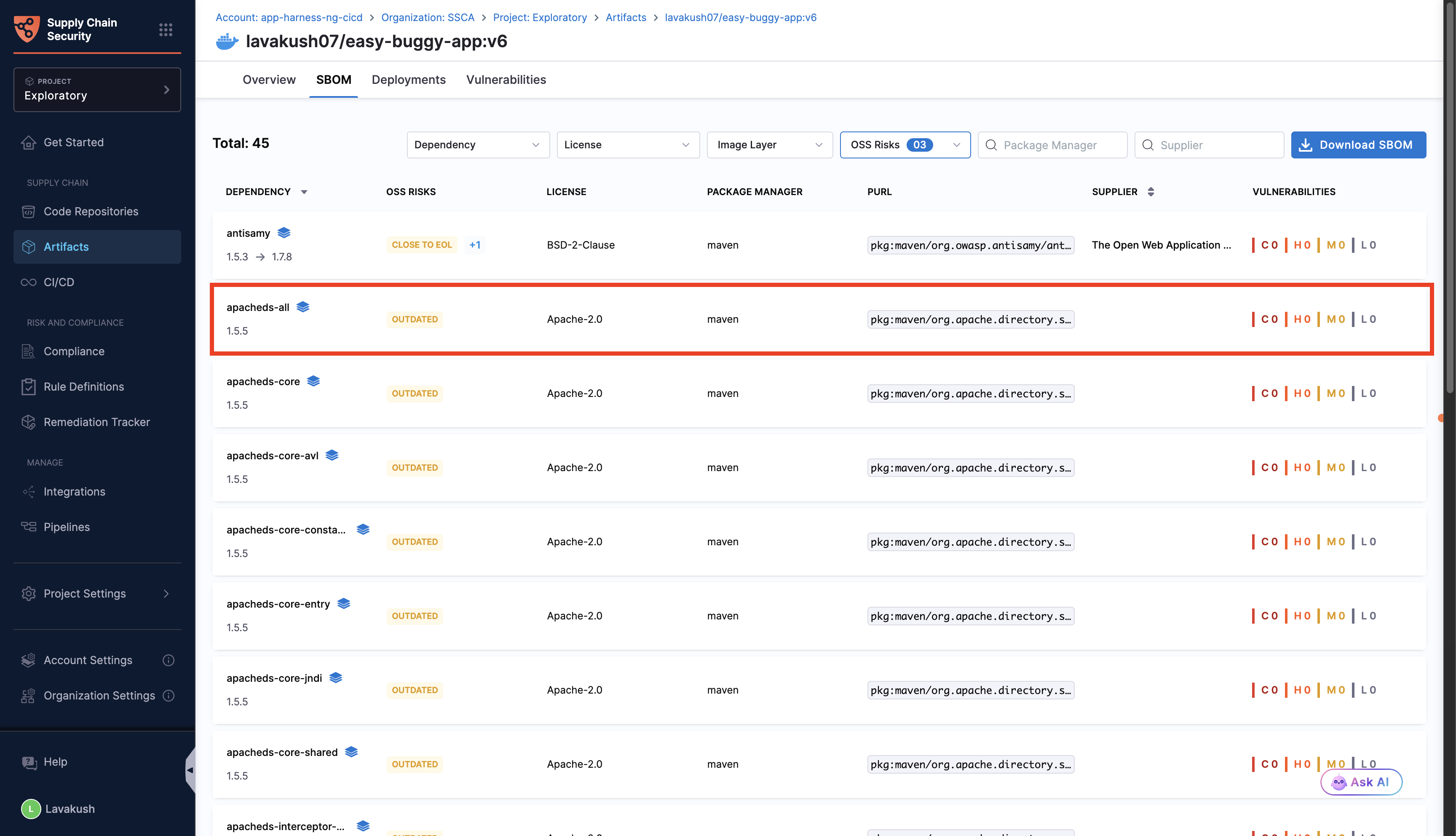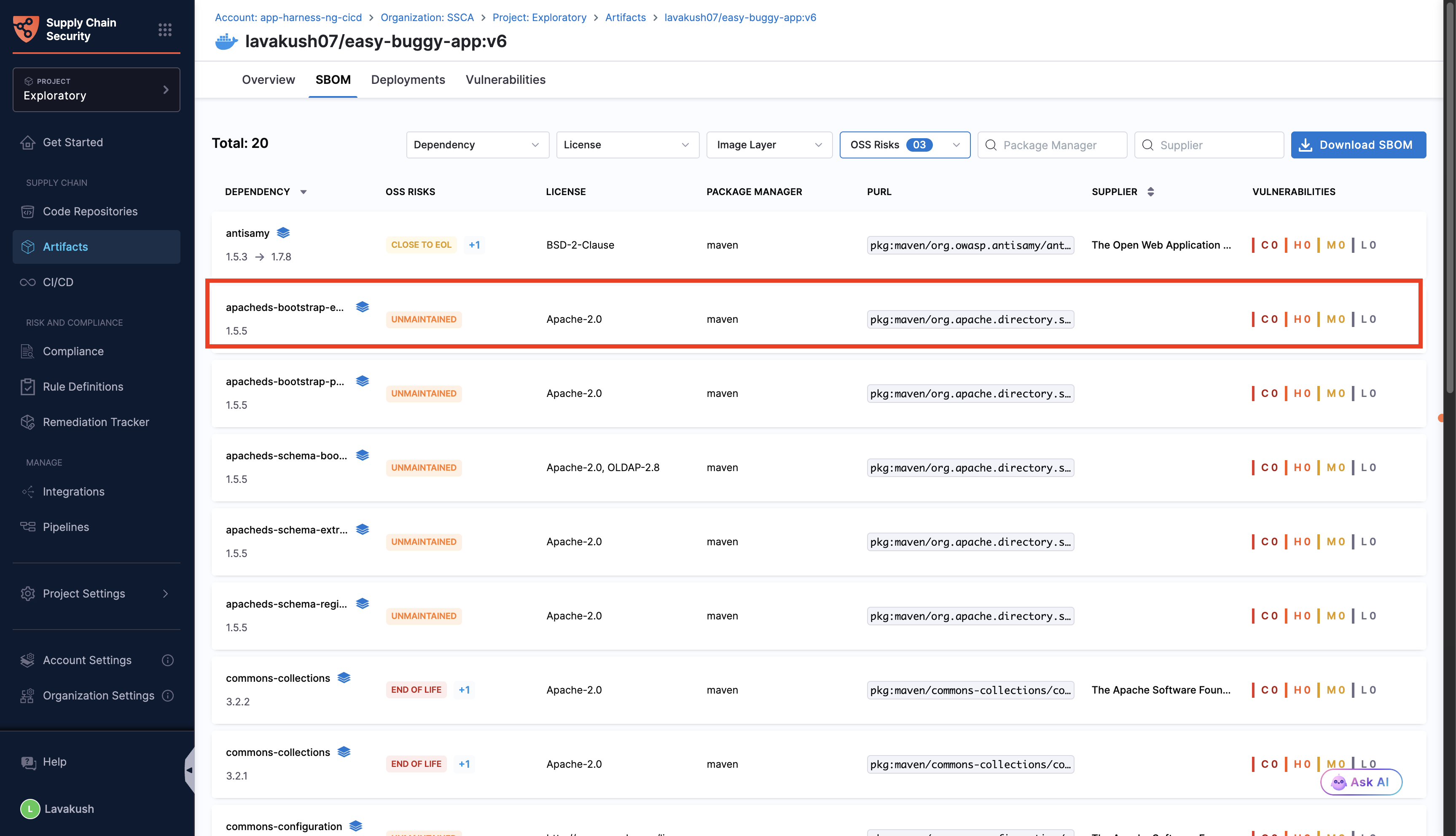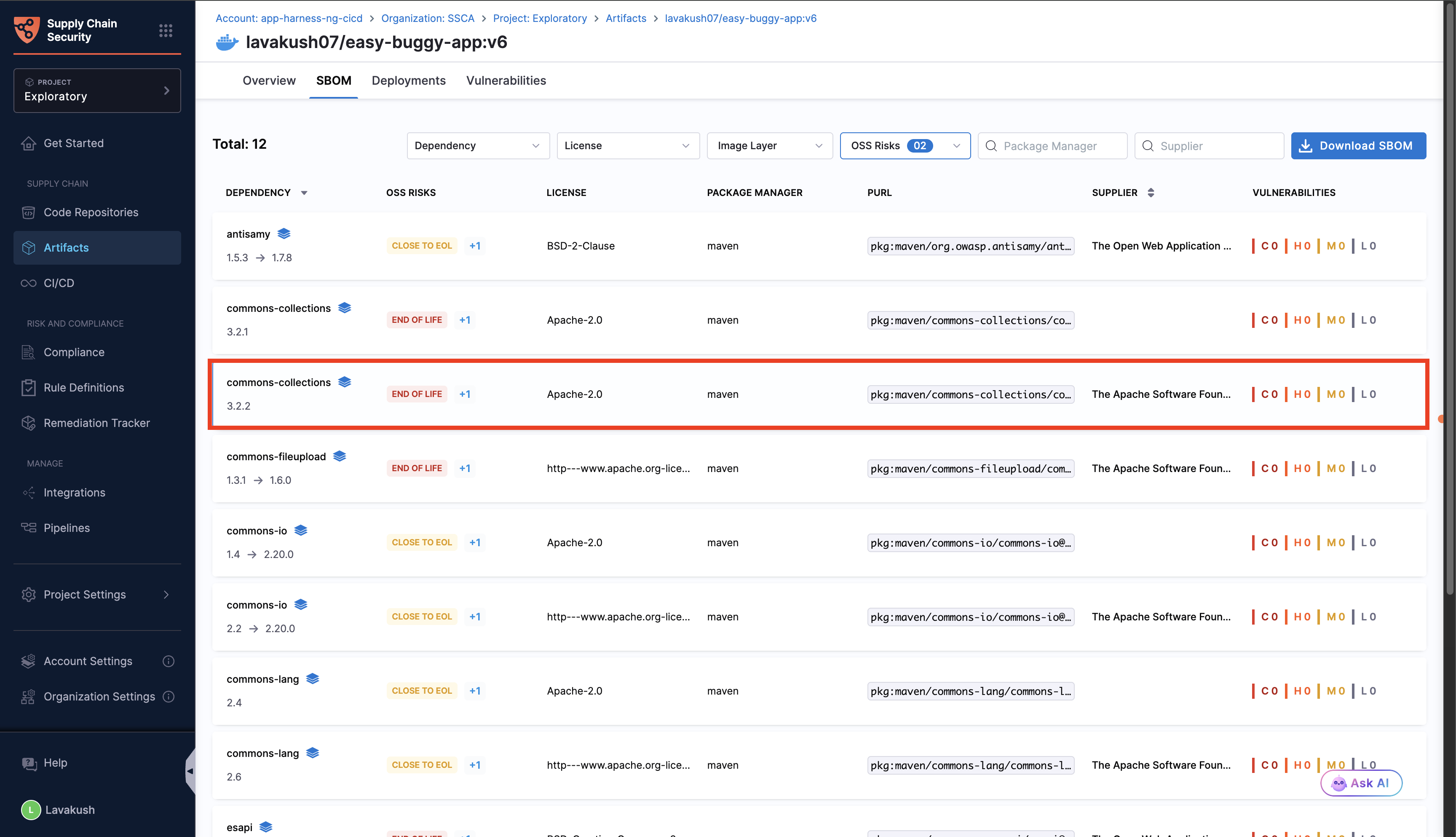 Open source software plays a critical role in the software landscape, with studies showing that over 90% of codebases contain open source components. While it accelerates development and innovation, it can also introduce security risks if not managed carefully. By assessing the components listed in your Software Bill of Materials (SBOM) against OWASP Top 10 risks helps to uncover risks such as outdated, unmaintained or end of life components, ensuring your OSS dependencies remain secure, reliable, and up to date. Running OSS risk checks plays a vital role in strengthening your software supply chain and maintaining trust in your applications.