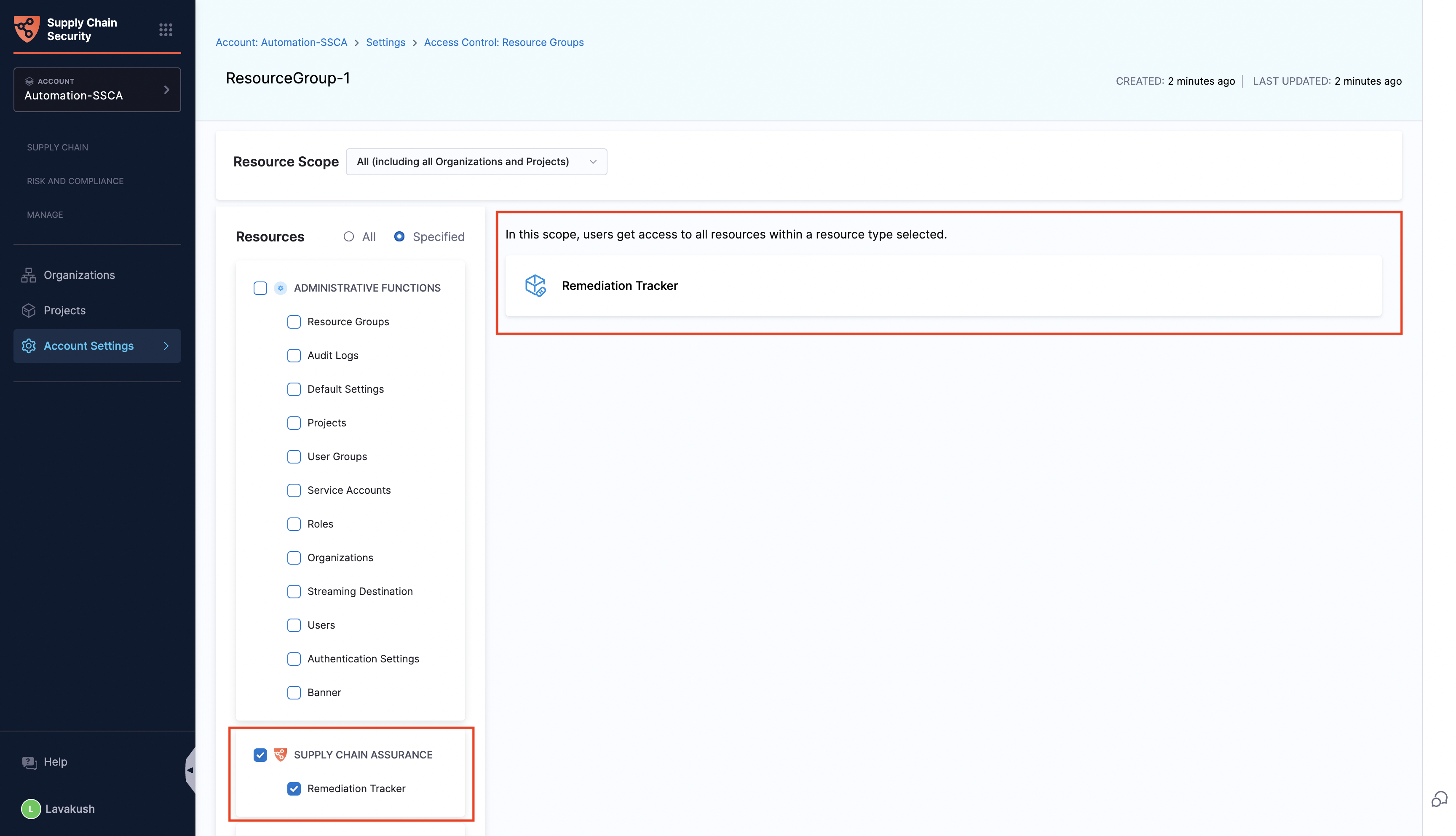 Here's how you can create and manage resource groups for the remediation tracker at the account level. Additionally, you can refer to Manage Resource Groups document to learn more.