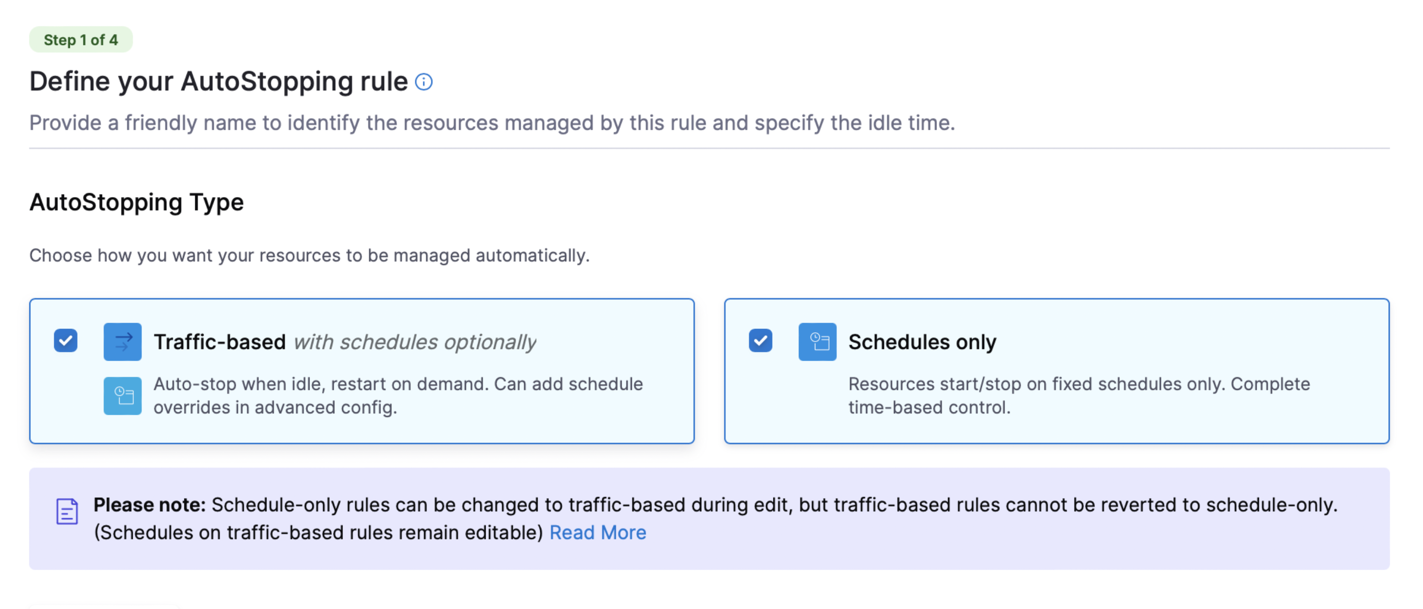 Kubernetes AutoStopping Rules V2: Kubernetes AutoStopping rules have been upgraded to V2. The new template is now available on the K8s rule creation step: