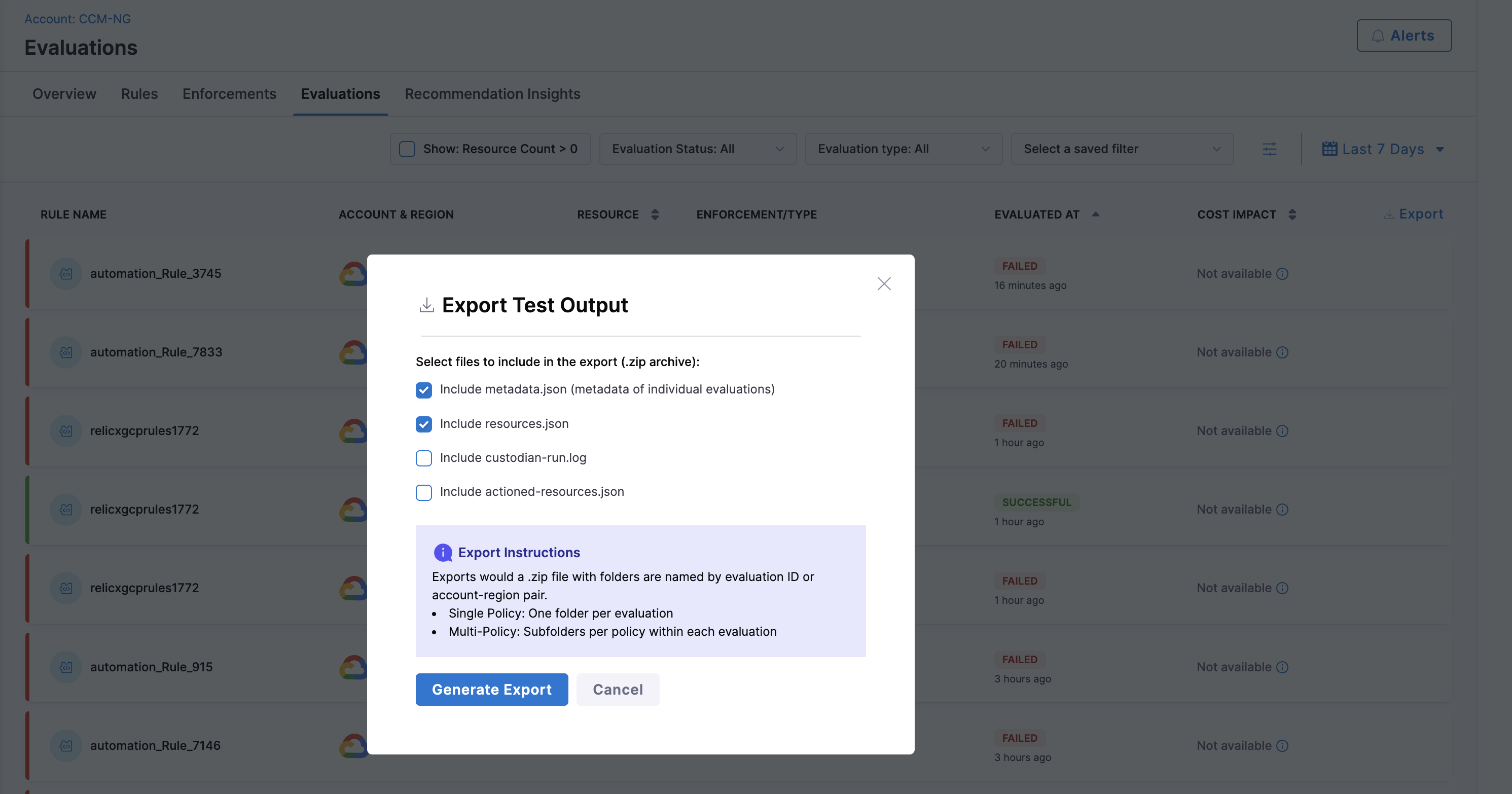 Governance Evaluation CSV Export: We fixed an issue where exporting a Governance evaluation with Keep Filters Applied selected, but no filters actually applied, resulted in an empty resource file being downloaded. [CCM-25498]