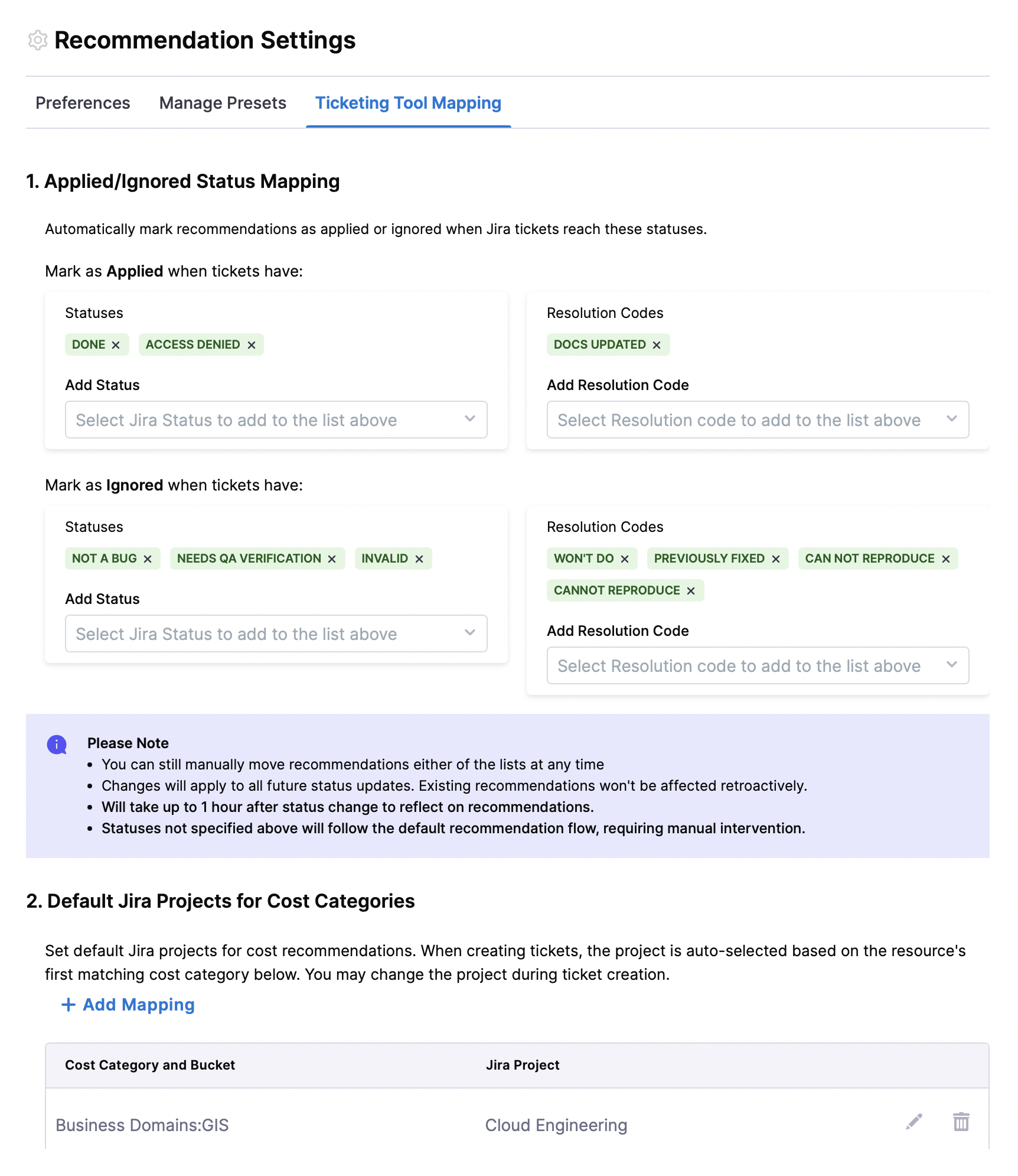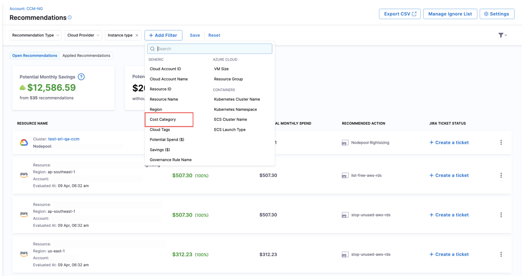Bug Fix for Cost Category mapped Jira Ticket: We fixed an issue where, when the Jira project came from a Cost Category mapping, the issue type wasn’t being fetched automatically on the initial load of the Create Jira Ticket form. [CCM-29166]