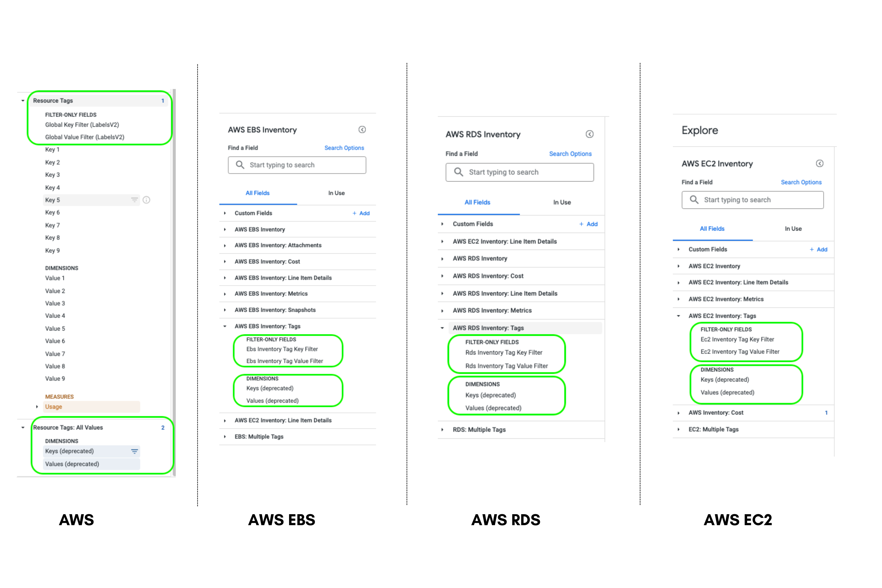 The RDS inventory dashboards did not reflect the updated DBInstanceClass when RDS instance class was updated. Due to a bug in our RDS data-load CloudFunction, the DBInstanceClass column was not being updated in the awsRdsInventory table. The dashboards query this awsRdsInventory table, which is why the updated DBInstanceClass couldn't be seen in the dashboard. The issue has been resolved. The RDS Inventory dashboard now displays the updated instance-class as expected. Also, there was a discrepancy in data due to a bug in the join condition of our looker query. We have updated the join and the data looks correct now.