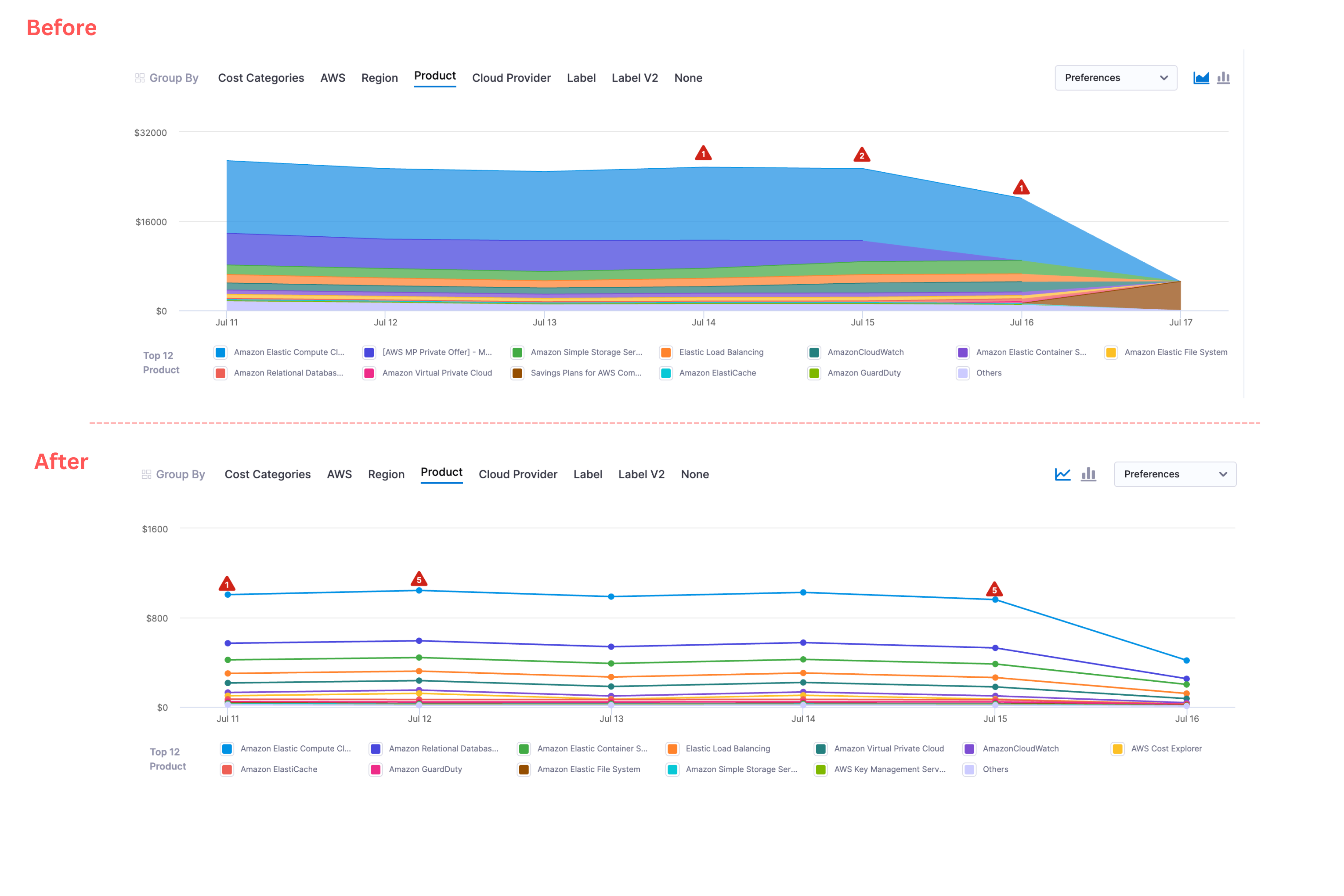 “Others” cost preference now supports negative values: Previously, when Show Others (not in top 12) was enabled, negative costs in the “Others” category were shown as zero. We’ve fixed this—negative values will now display correctly in Perspectives. [CCM-28678]