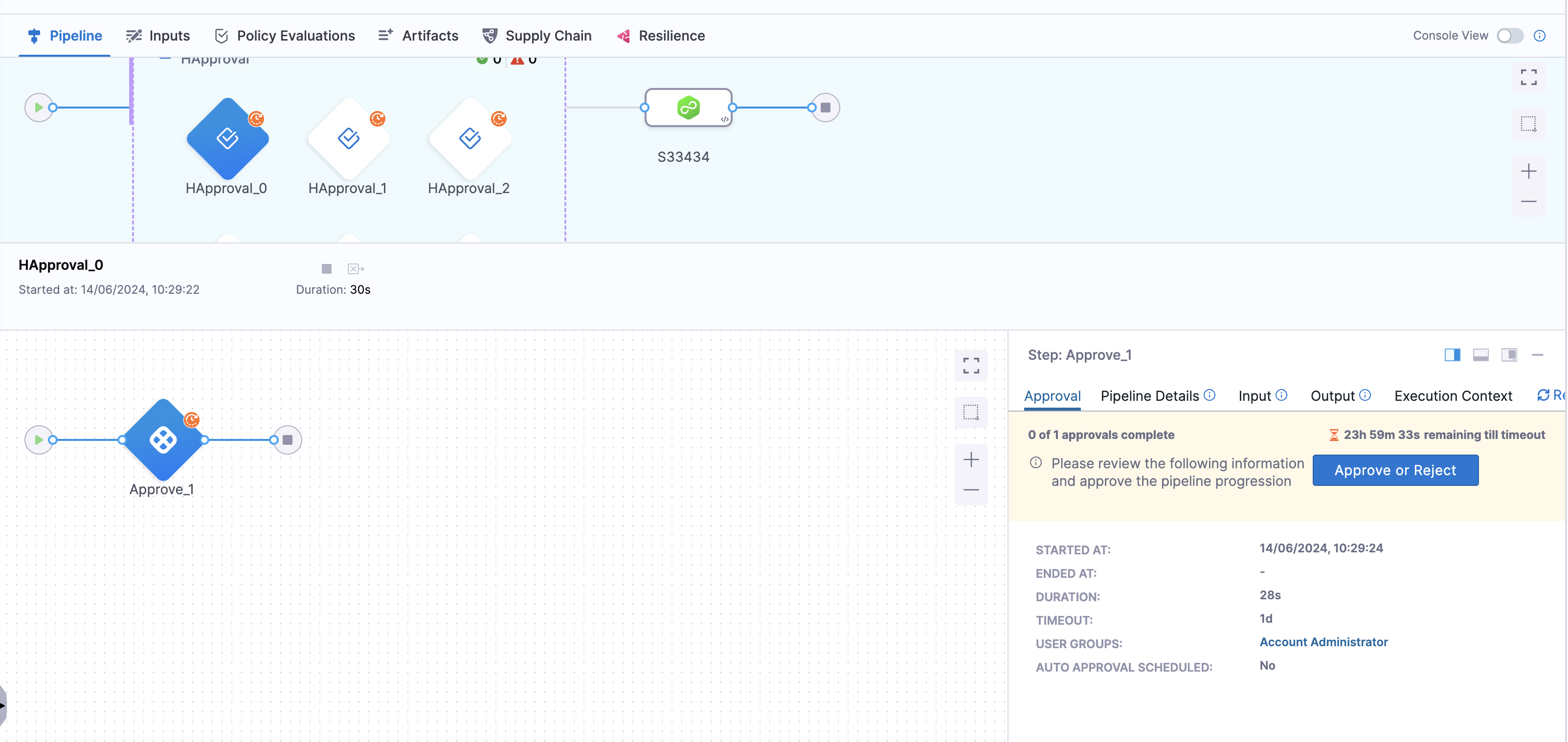 When no Approval criteria is provided then pipeline execution fails with right error message but console view keeps loading (CDS-39560)
