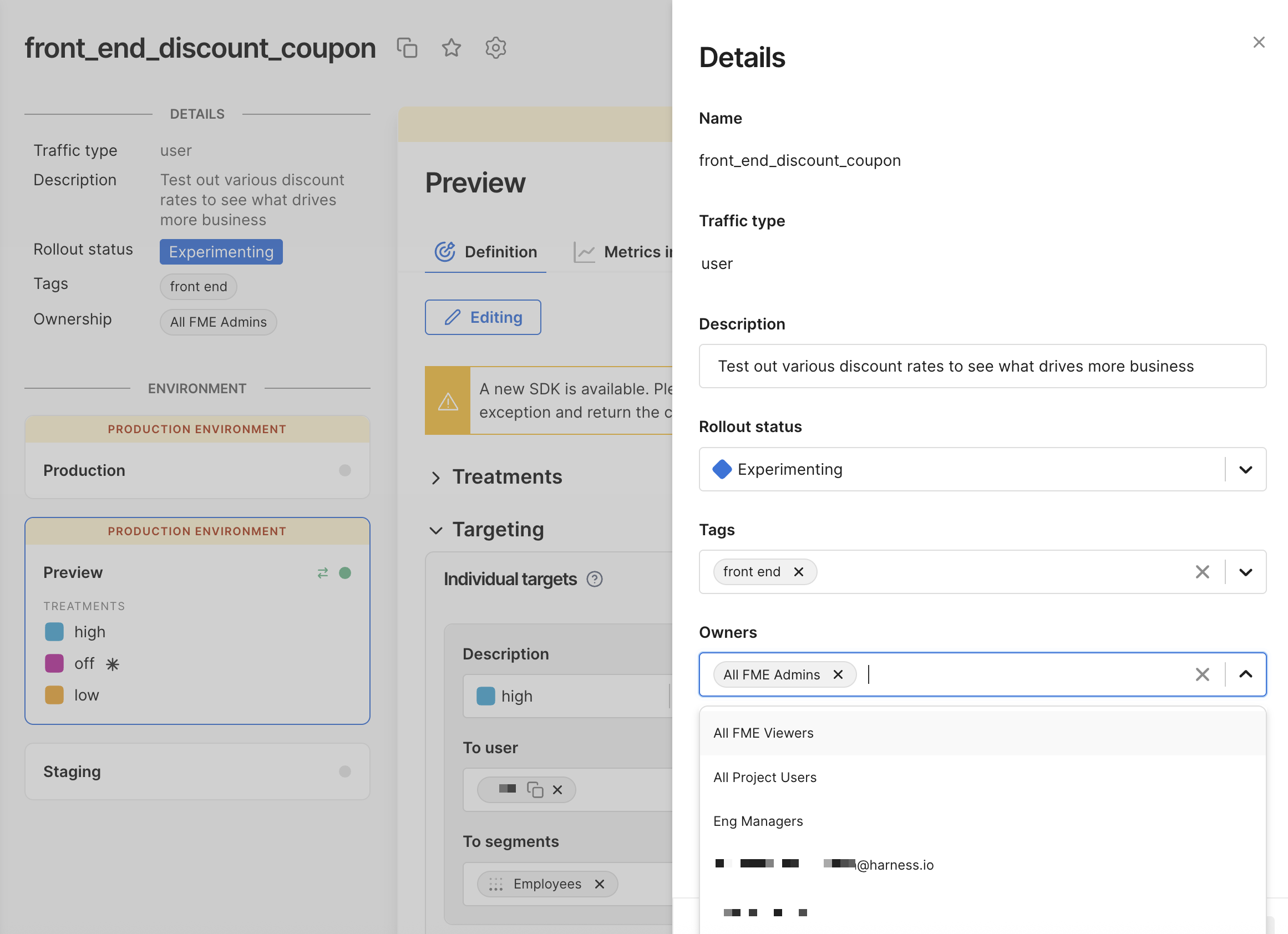 Customers on the Enterprise Plan can then work with their Harness sales representative to activate a paid FME subscription with access to additional features.